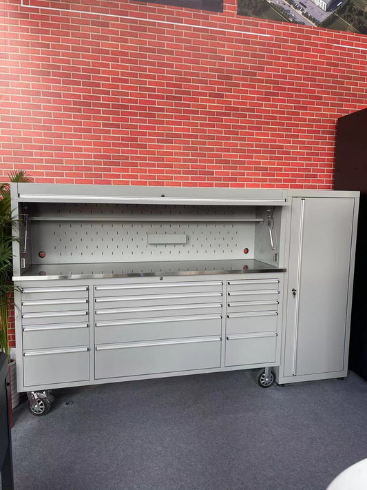 FREEDOM 72inch 15 Drawers Tool Chest With Up Cabinet&Pegboard SS