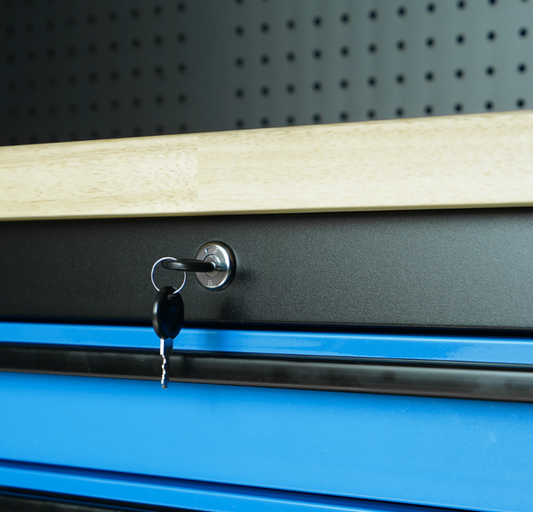NEW 72 INCH BLUE TOOL CABINET WITH OVERHEAD CABINETS AND PEGBOARD! WOW