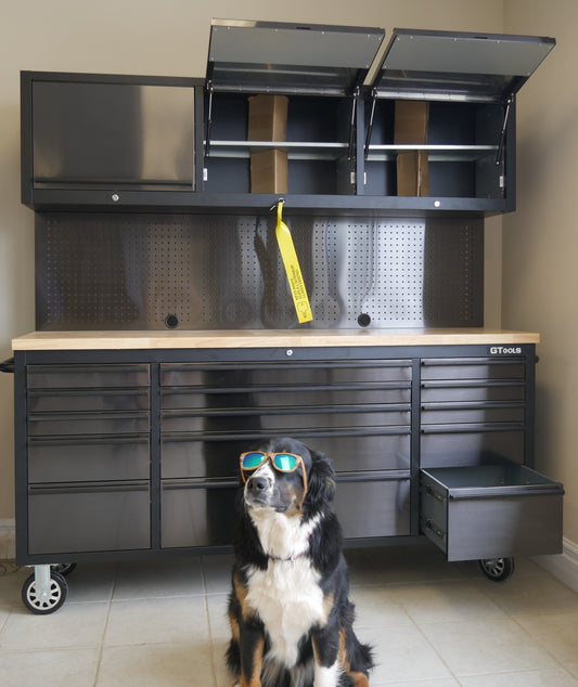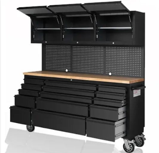 72 INCH BLACK TOOL CABINET WITH PEGBOARD & UPPER CABINETS