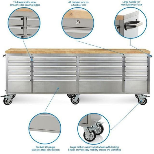 freedom 72 inch 15 Drawers Tool Chest, stainless steel