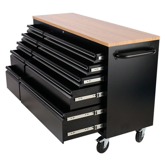 55Inch 10 Drawer Moving Tool Chest Storage Lockable Tool Cabinet Garage Workbench