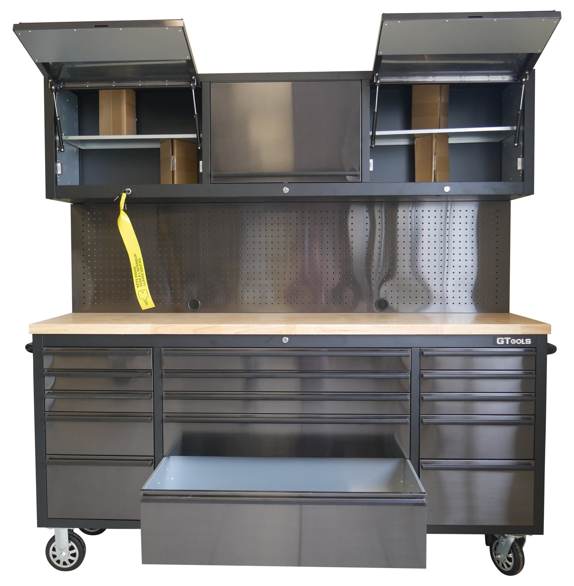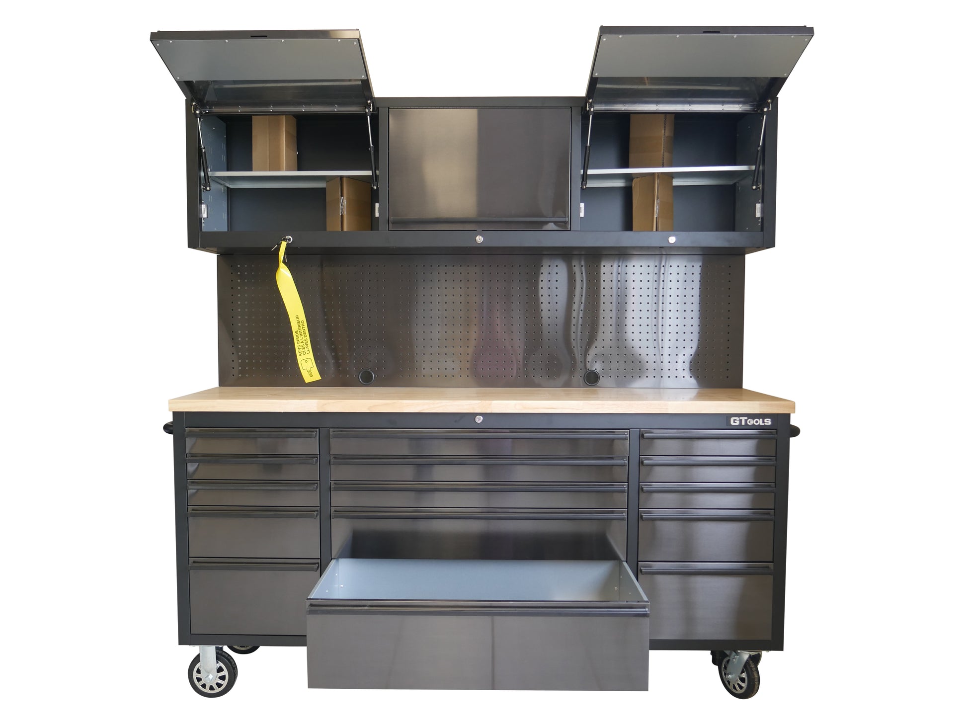 72 INCH BLACK STEEL TOOL CABINET WITH PEGBOARD & UPPER CABINETS