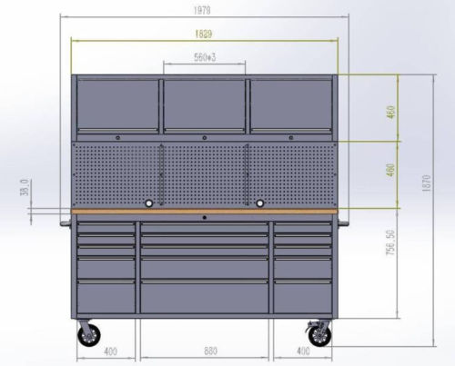 FREEDOM 72inch 15 Drawers Tool Chest With Up Cabinet&Pegboard SS