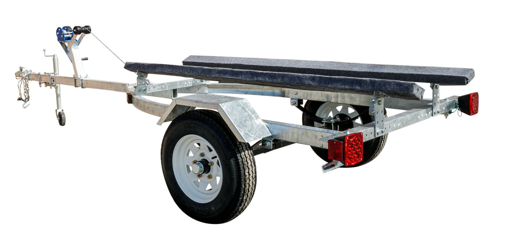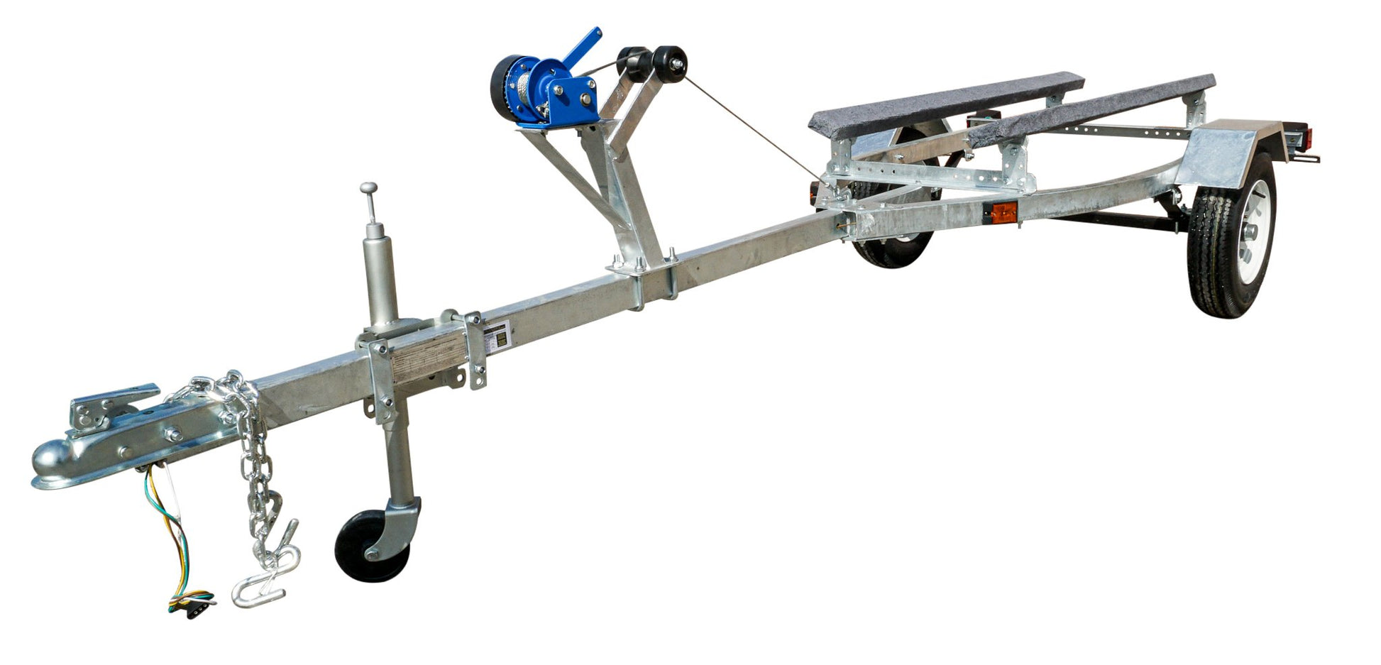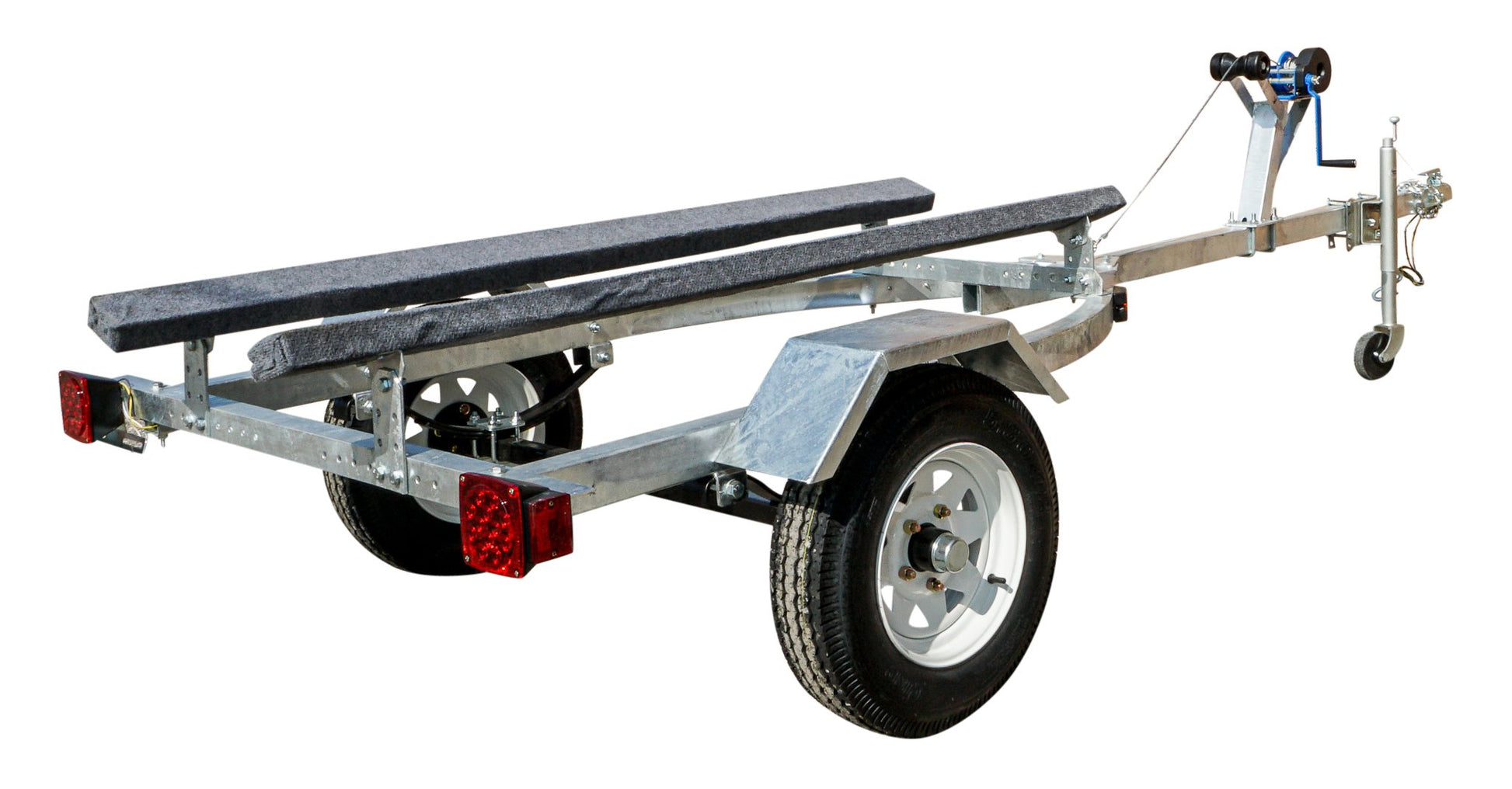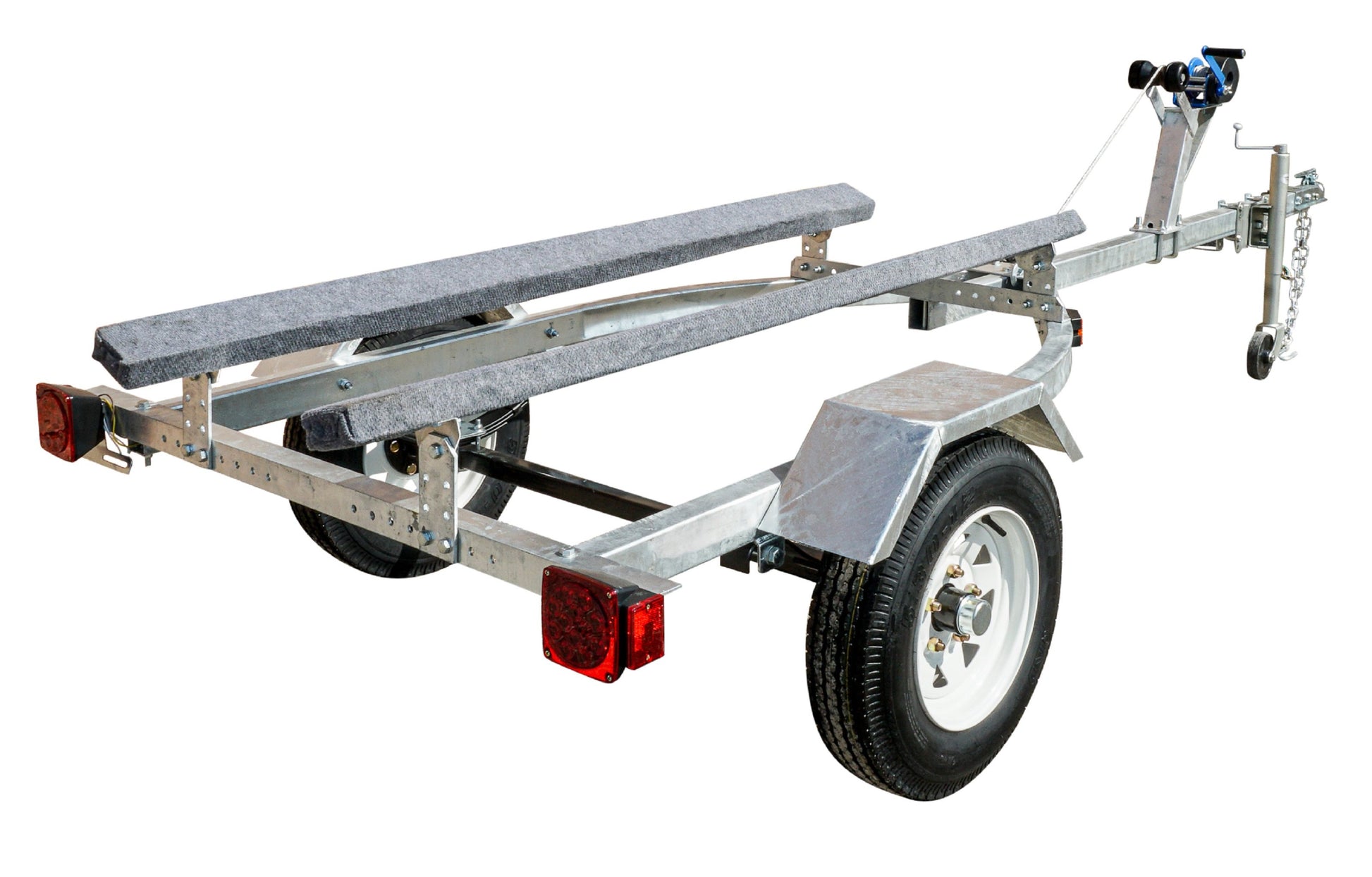 OUR DELUXE MODEL INCLUDES BIGGER TIRES A JACK AND A 1FT LONGER DRAW-BAR TO ACCOMMODATE LARGER BOATS AND 5.30-12 TIRES