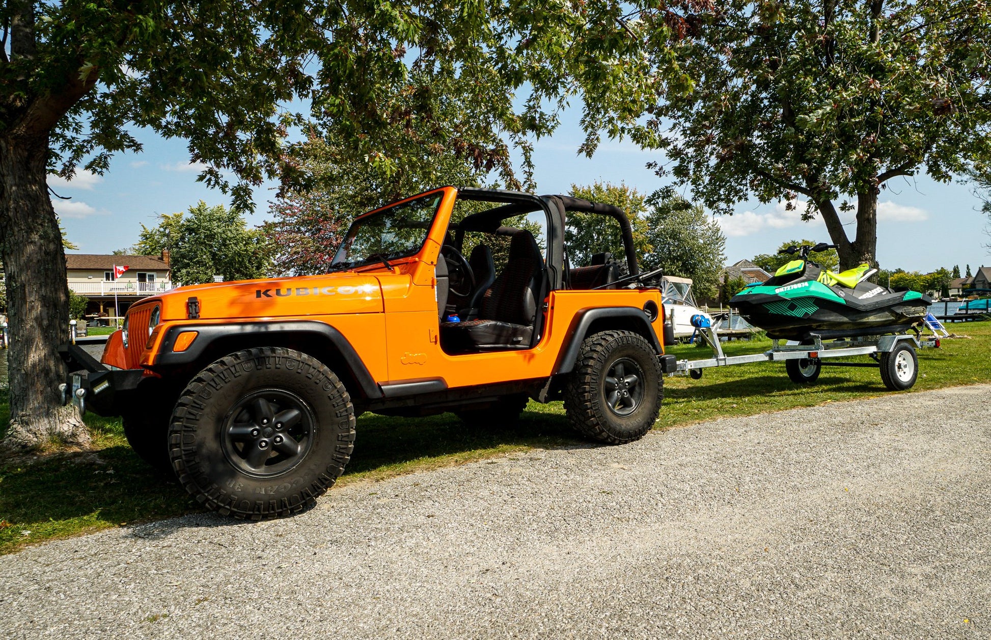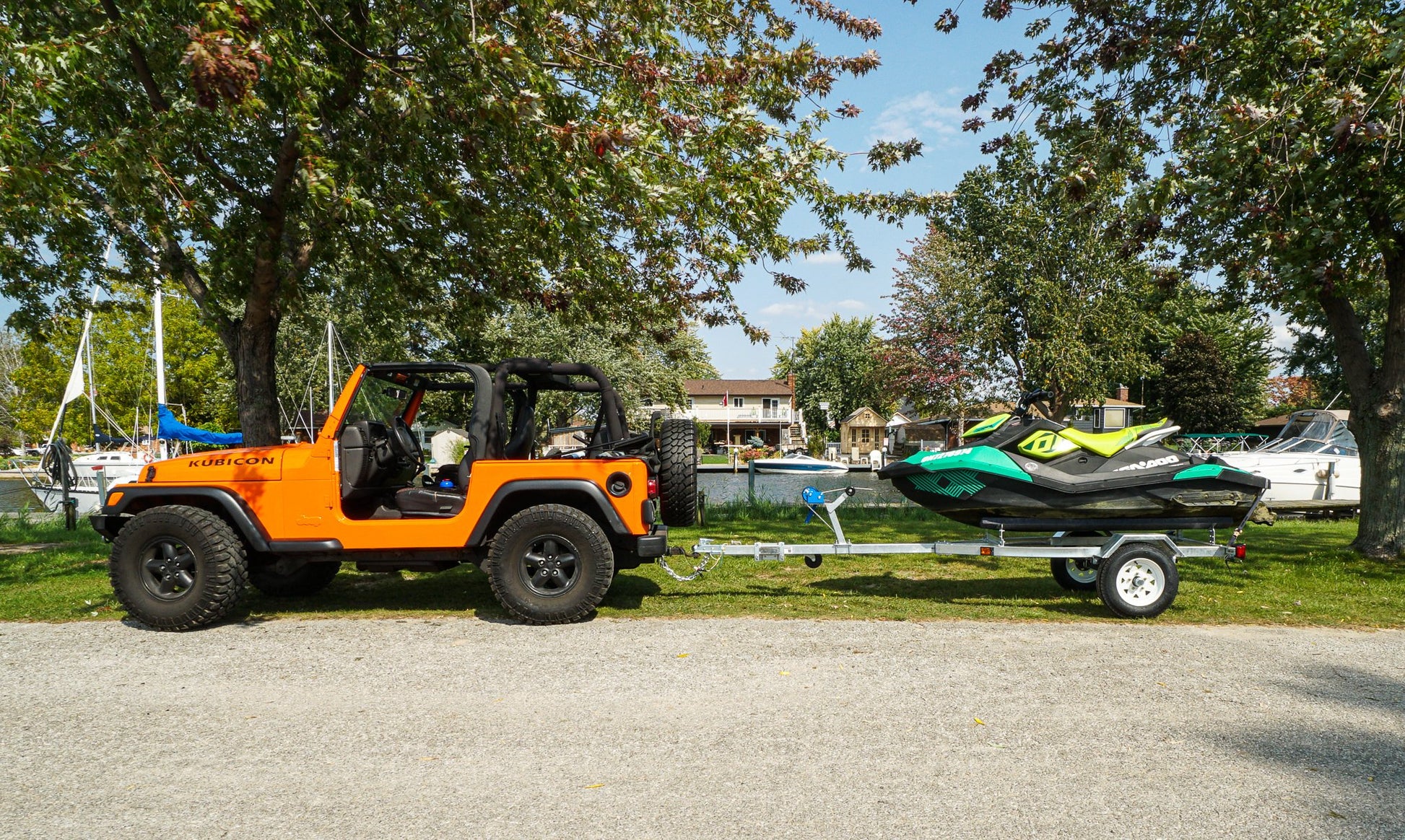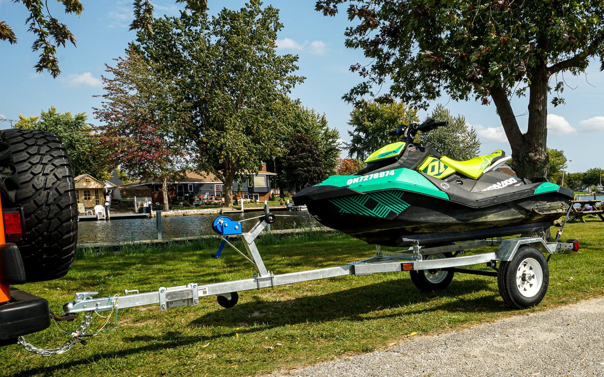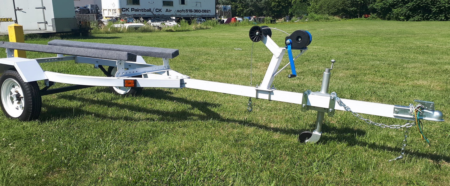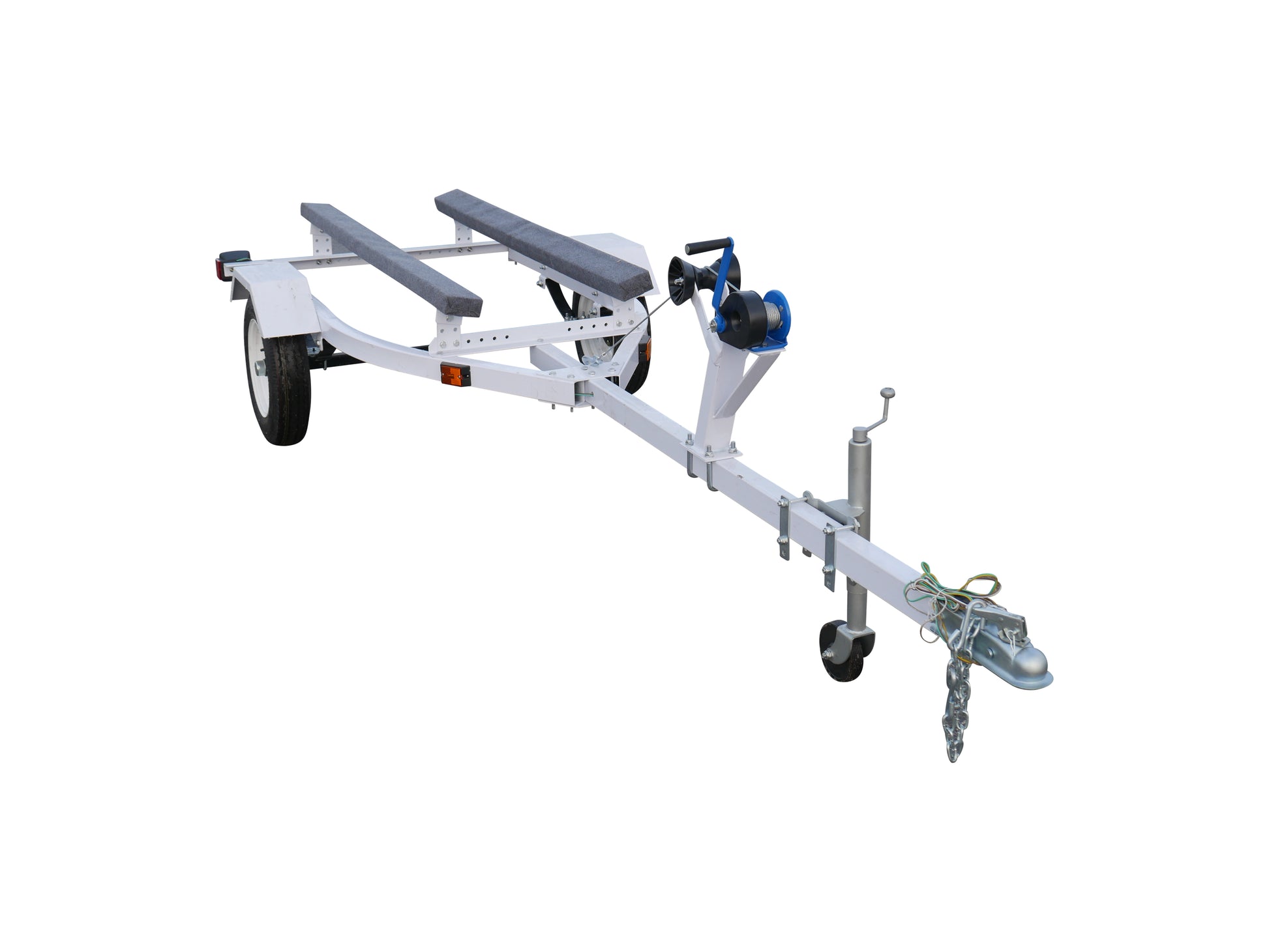 OUR DELUXE MODEL INCLUDES BIGGER TIRES A JACK AND A 1FT LONGER DRAW-BAR TO ACCOMMODATE LARGER BOATS AND 5.30-12 TIRES