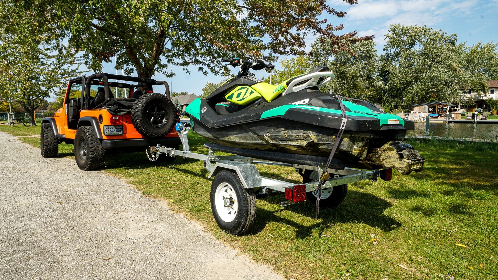 The FREEDOM Personal Watercraft and Boat Trailer Kit allows you to easily load, transport and unload your jet ski/personal watercraft. Rugged steel frame features 1100lbs. GVWR, 870-lb. load capacity. Road ready and meets DOT requirements. Assembly required.