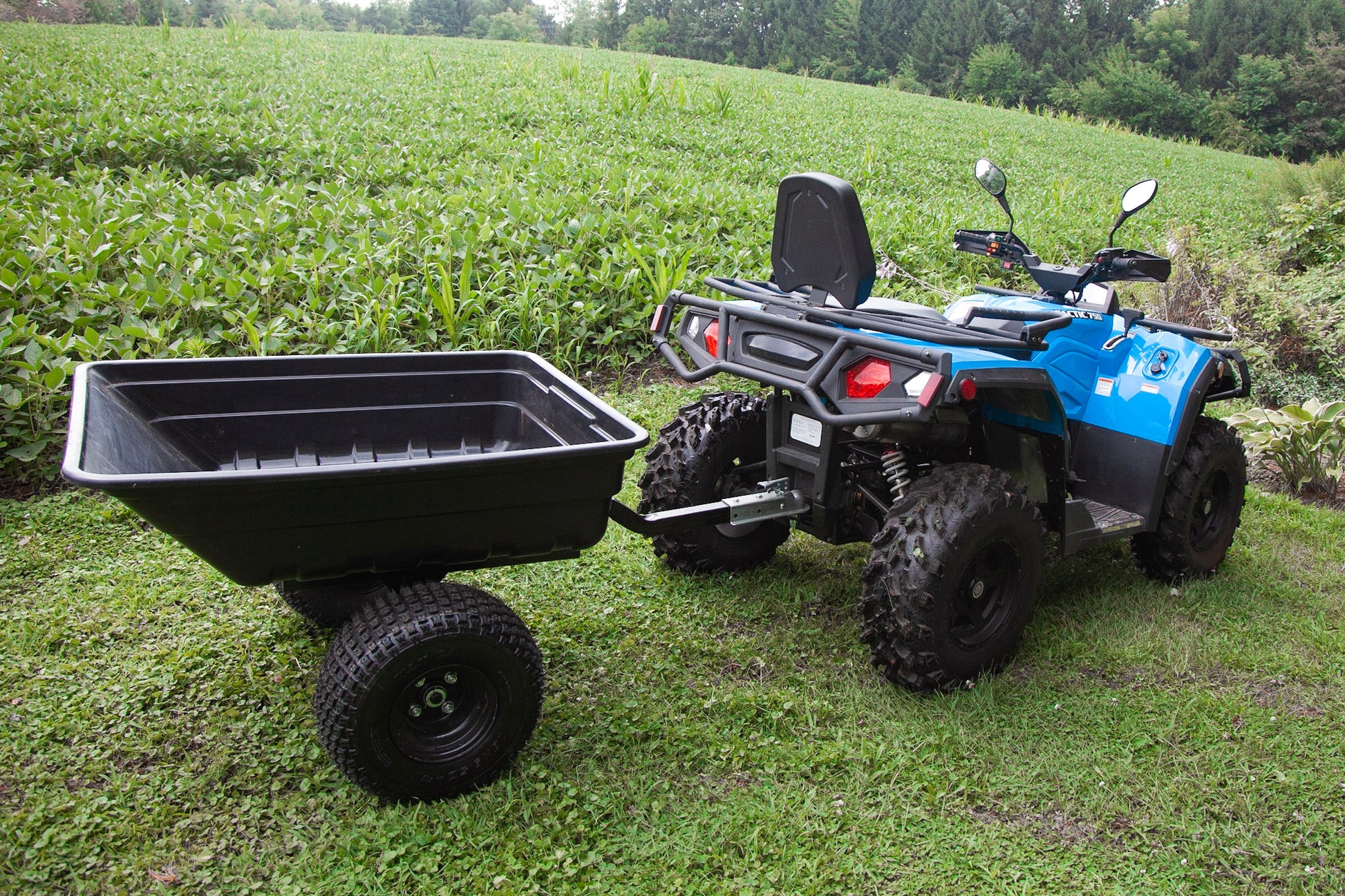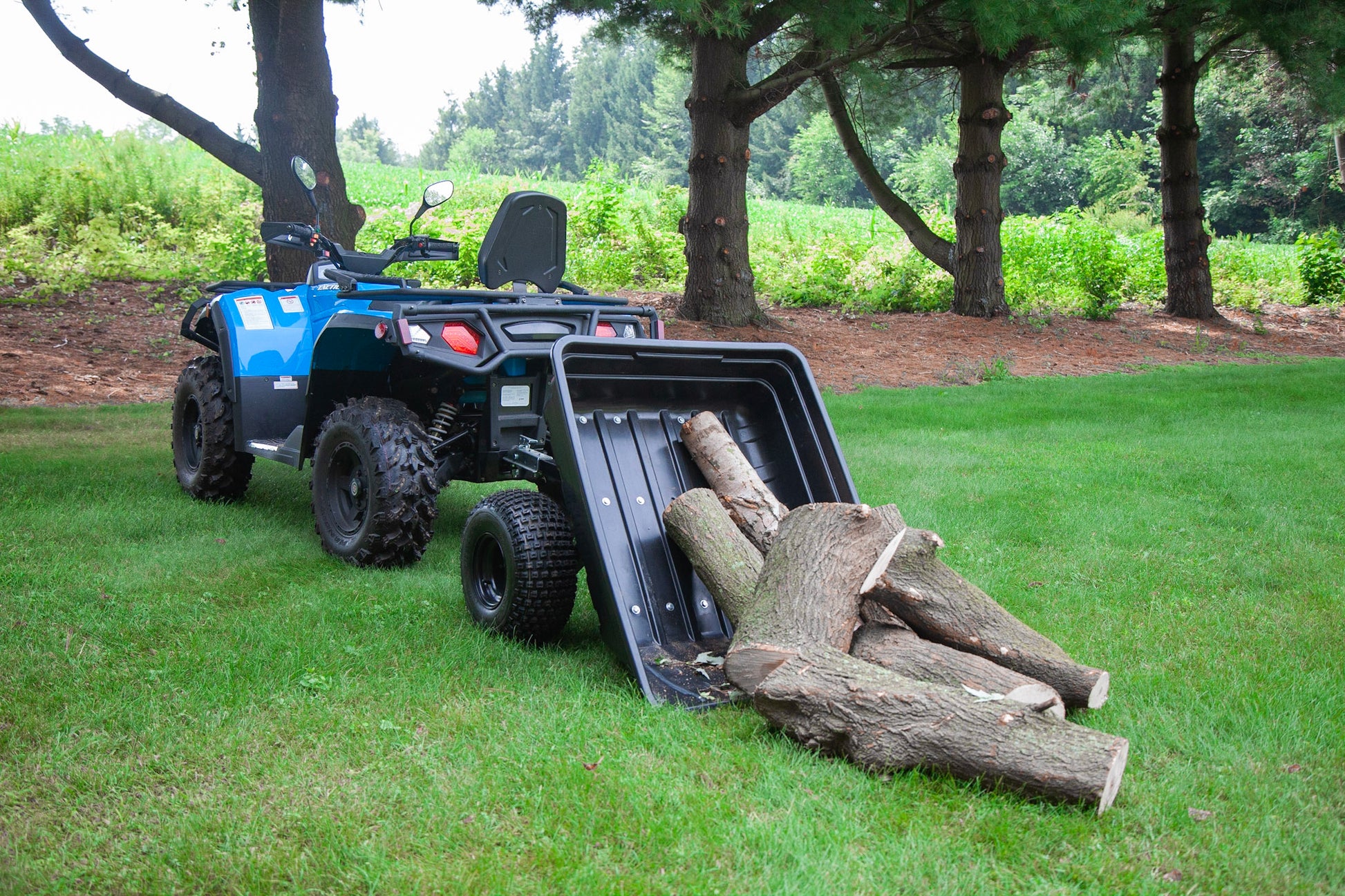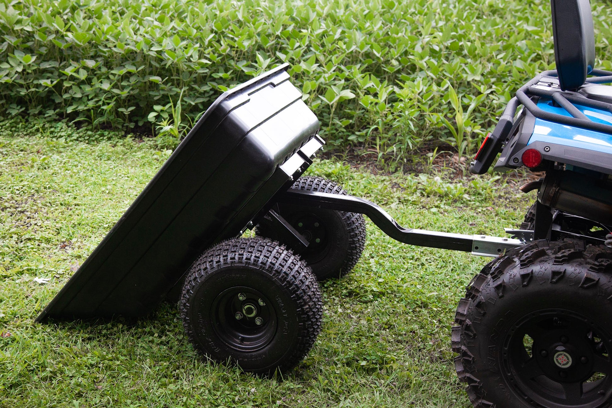 The Precision XPT ATV/LAWN trailer will get the job done right. Featuring a durable heavy-duty frame, aggressive 18-inch Off-road tires and a quality and deep poly tub. This trailer also is versatile as it has a higher ground clearance than almost any other trailer on the market and a one pin east tilt/dumping feature.