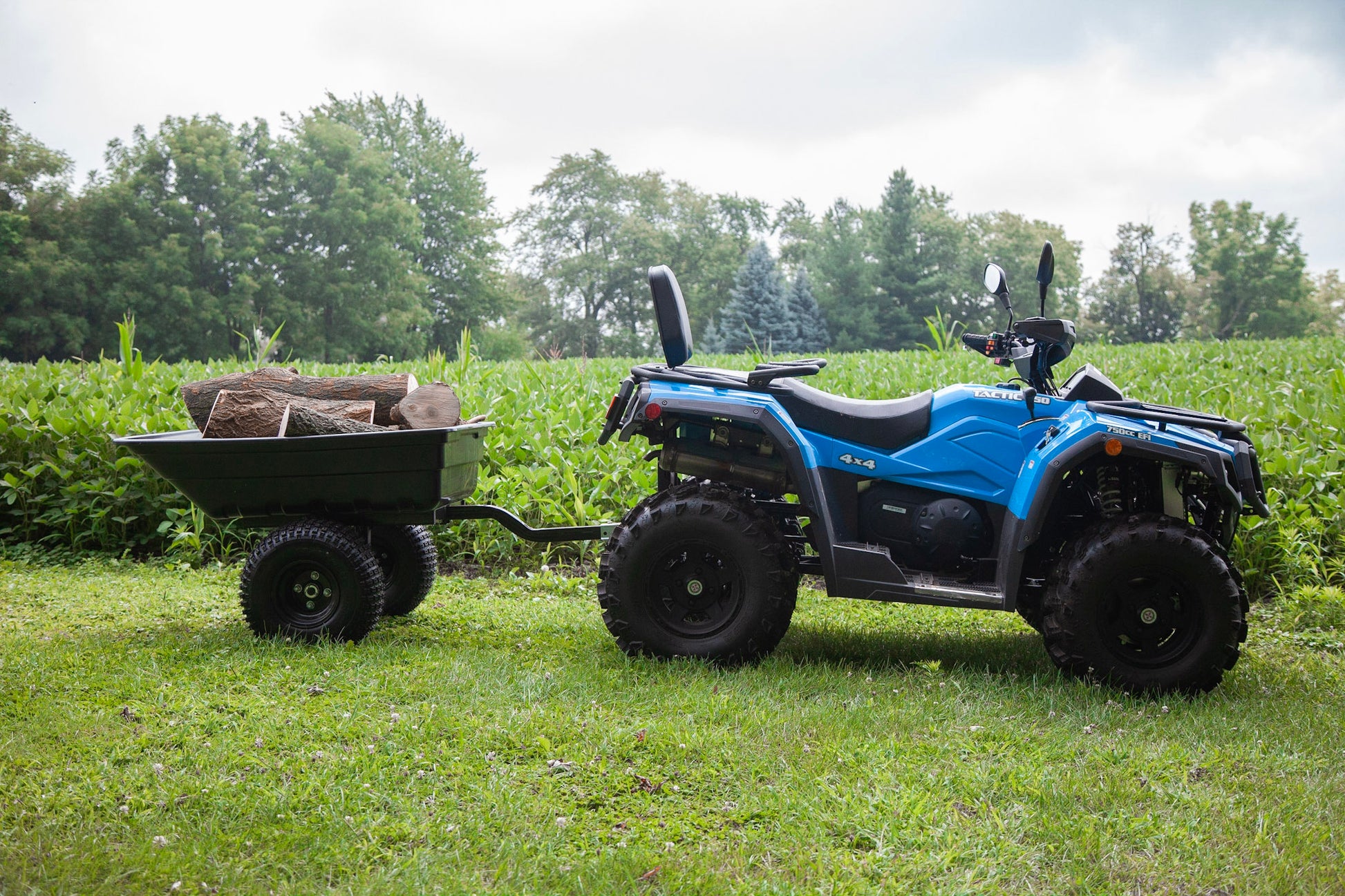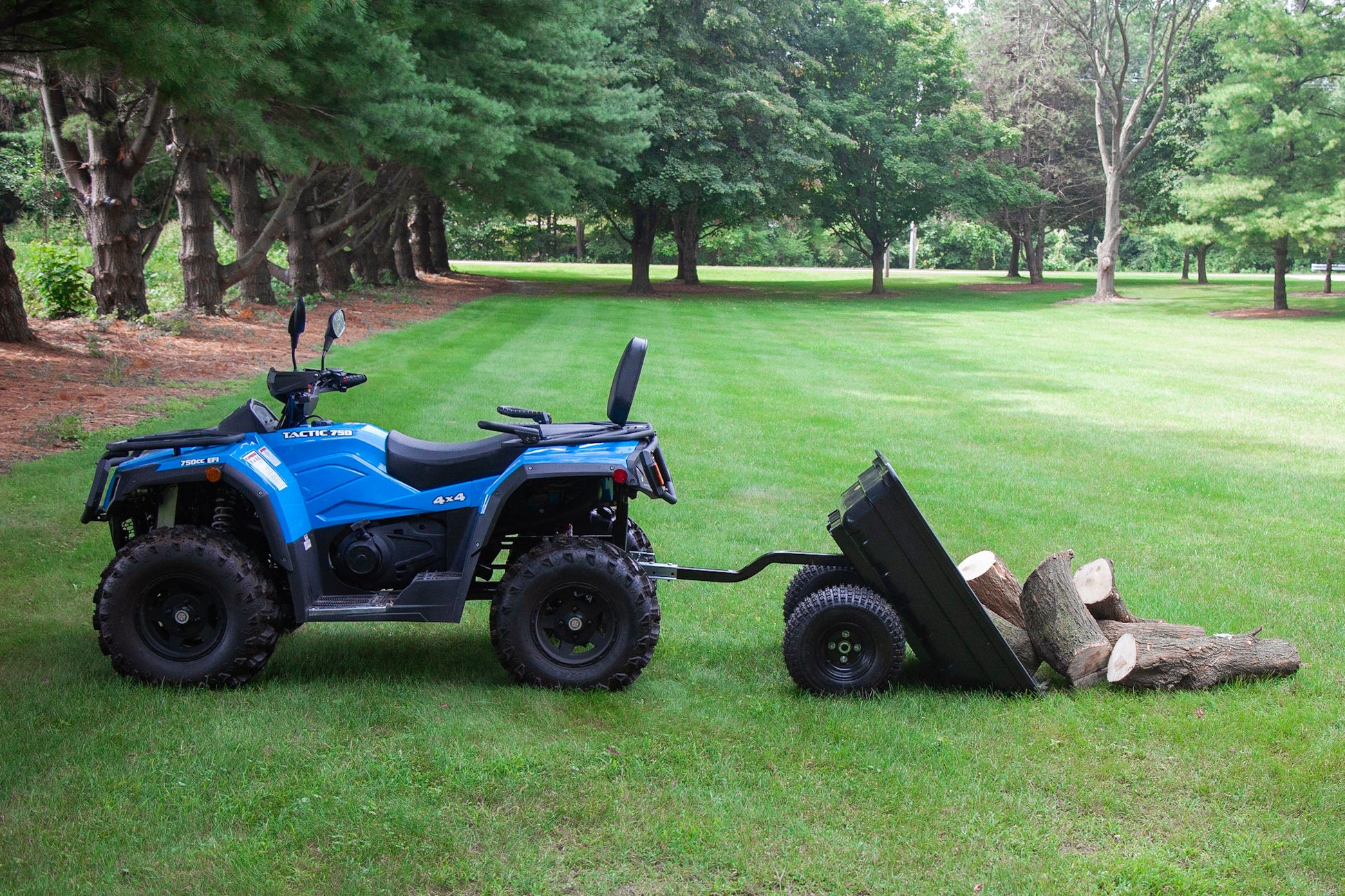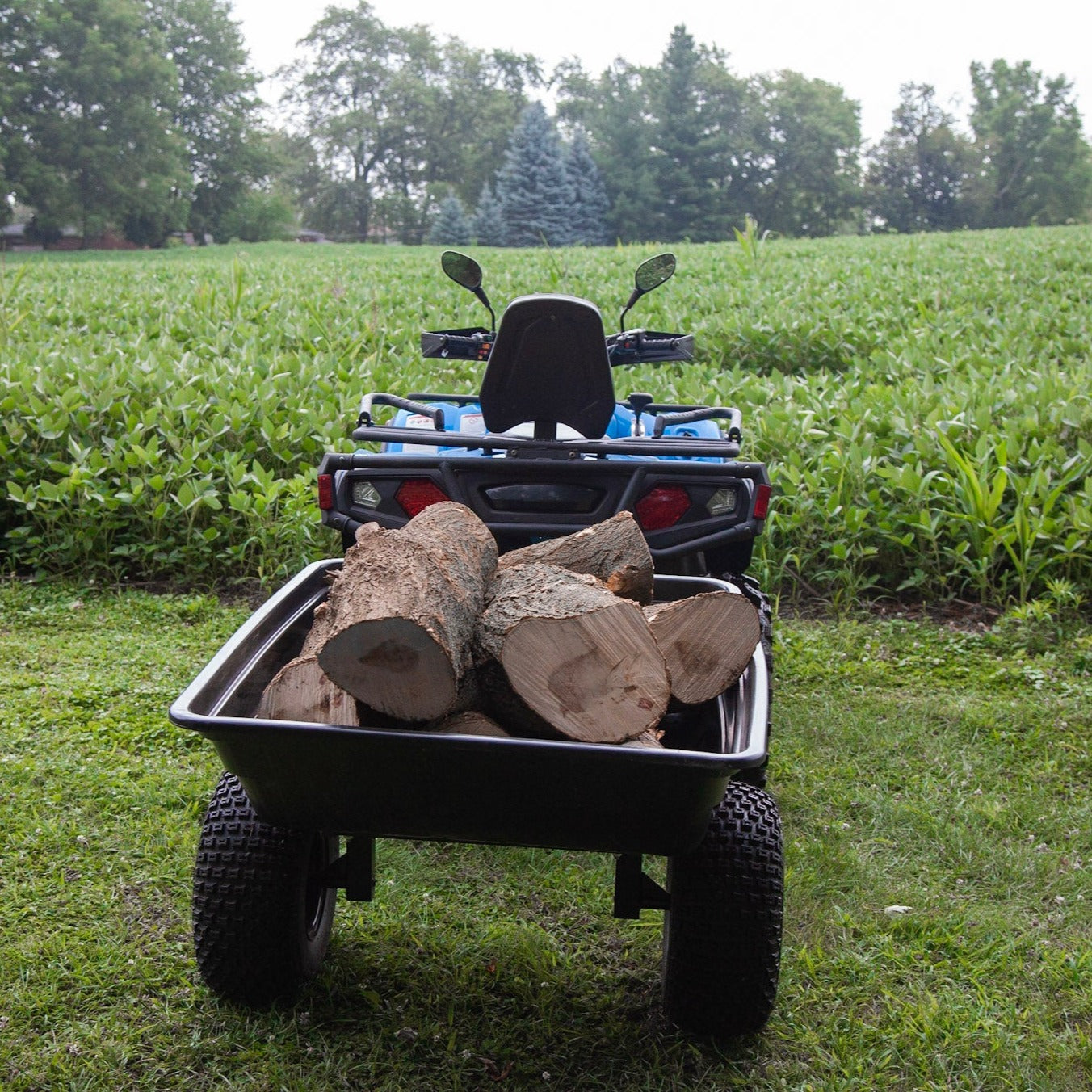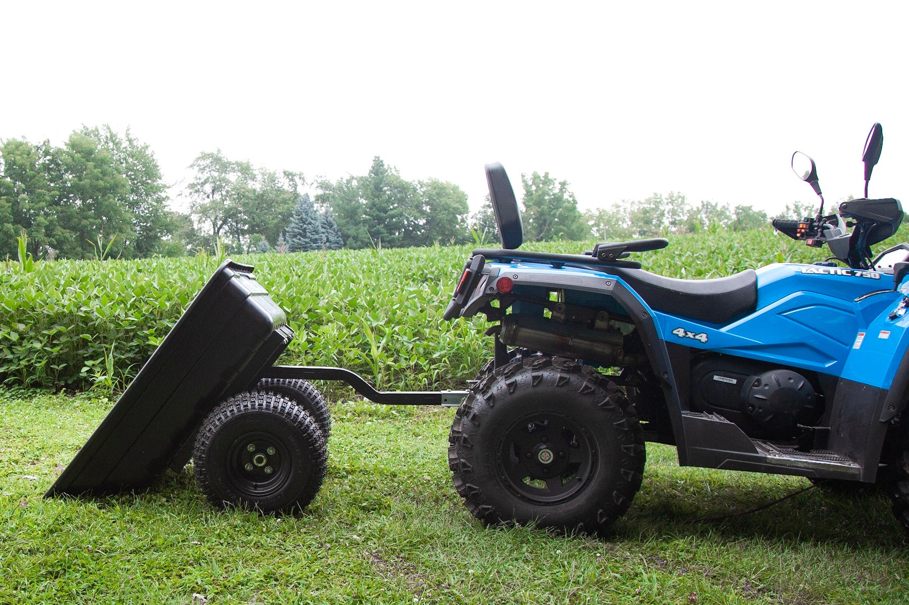 The Precision XPT ATV/LAWN trailer will get the job done right. Featuring a durable heavy-duty frame, aggressive 18-inch Off-road tires and a quality and deep poly tub. This trailer also is versatile as it has a higher ground clearance than almost any other trailer on the market and a one pin east tilt/dumping feature.